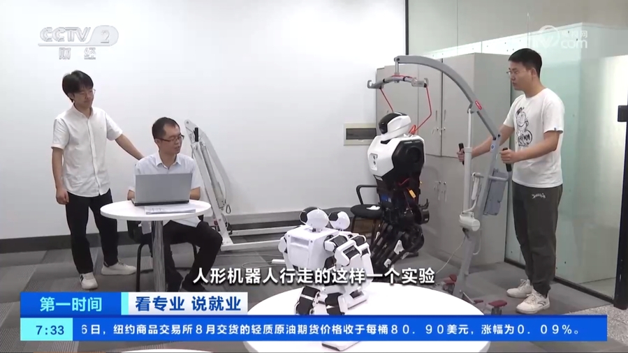 这是我们老师带领同学正在进行一个人形机器人行走的这样一个实验。传统的控制技术,经典的控制理论做起来很难,那么很大程度上我们现在都用了很多人工智能的方法。
